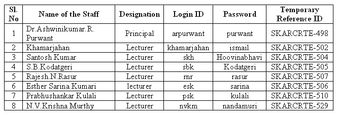 Raichur- 584103 Karnataka, INDIA. Ph No. 08532 655807 Fax No. -